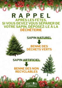 A l’occasion des fêtes de fin d’année, le SMICTOM LGB vous rappelle les consignes de tri en déchèterie de vos sapins naturels et artificiels.