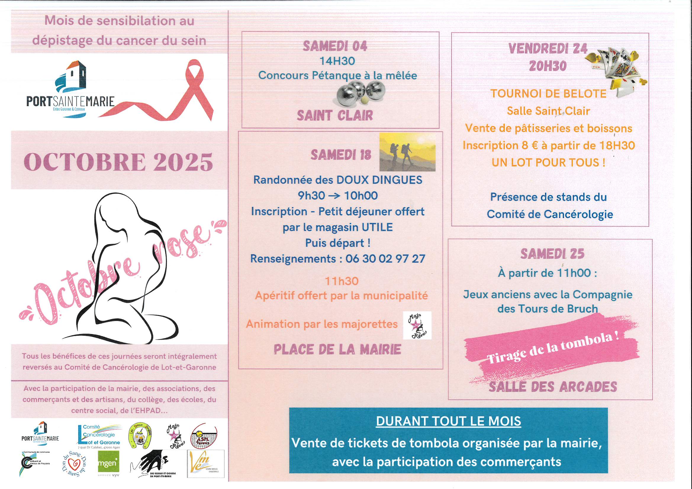 De nouveau cette année, Port-Sainte-Marie s’associe à la sensibilisation au dépistage du cancer su sein…